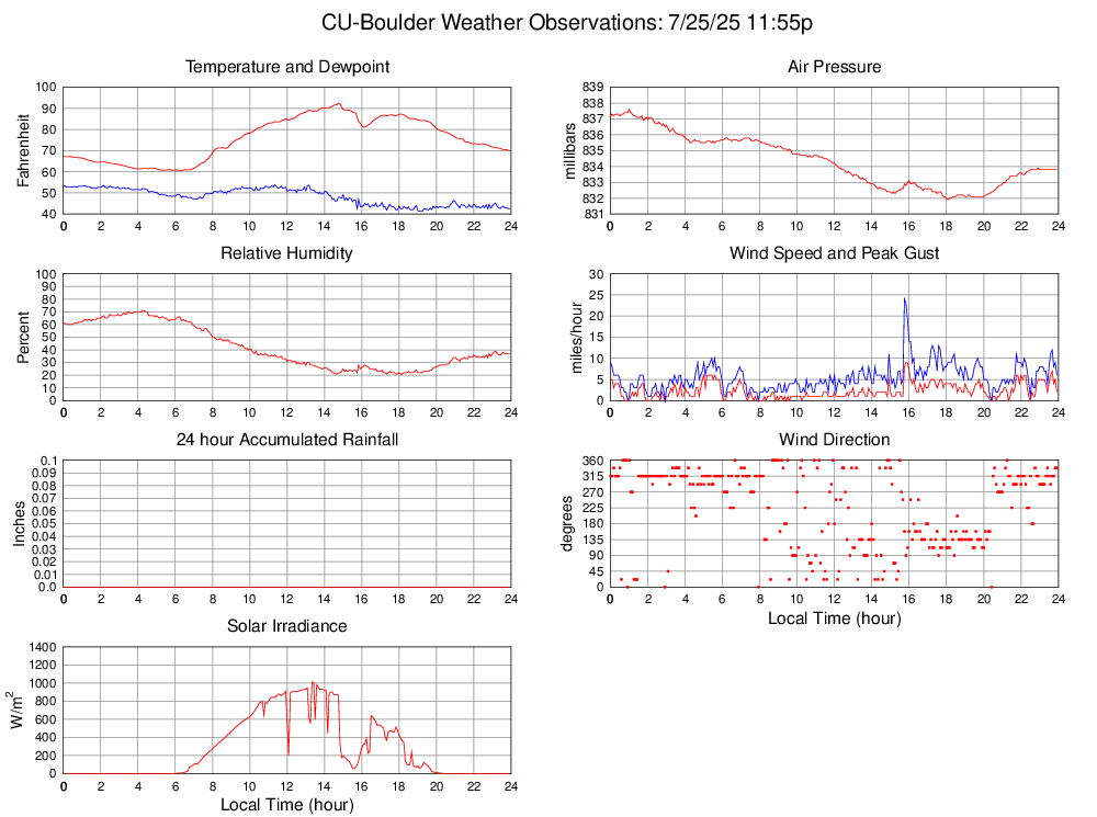 Temperature (F) 69.9 60.5 @ 06:15 92.4 @ 14:45 75.4