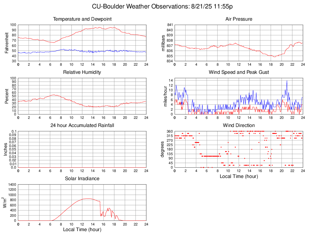 Temperature (F) 76.7 65.8 @ 06:40 95.5 @ 15:10 81.4