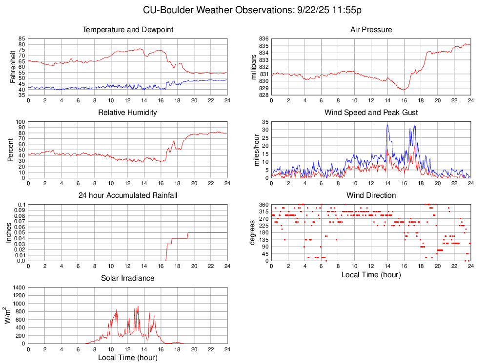 Temperature (F) 55.0 53.7 @ 22:55 76.2 @ 13:25 64.8