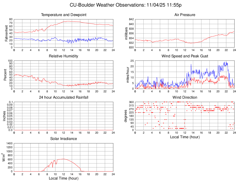 Temperature (F) 62.8 42.3 @ 00:55 74.8 @ 13:25 60.7