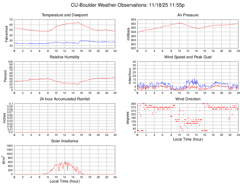 Temperature (F) 47.5 46.8 @ 07:25 65.1 @ 15:10 53.6