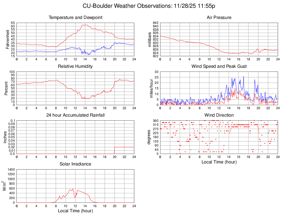 Temperature (F) 40.6 28.7 @ 08:05 62.2 @ 14:10 42.2