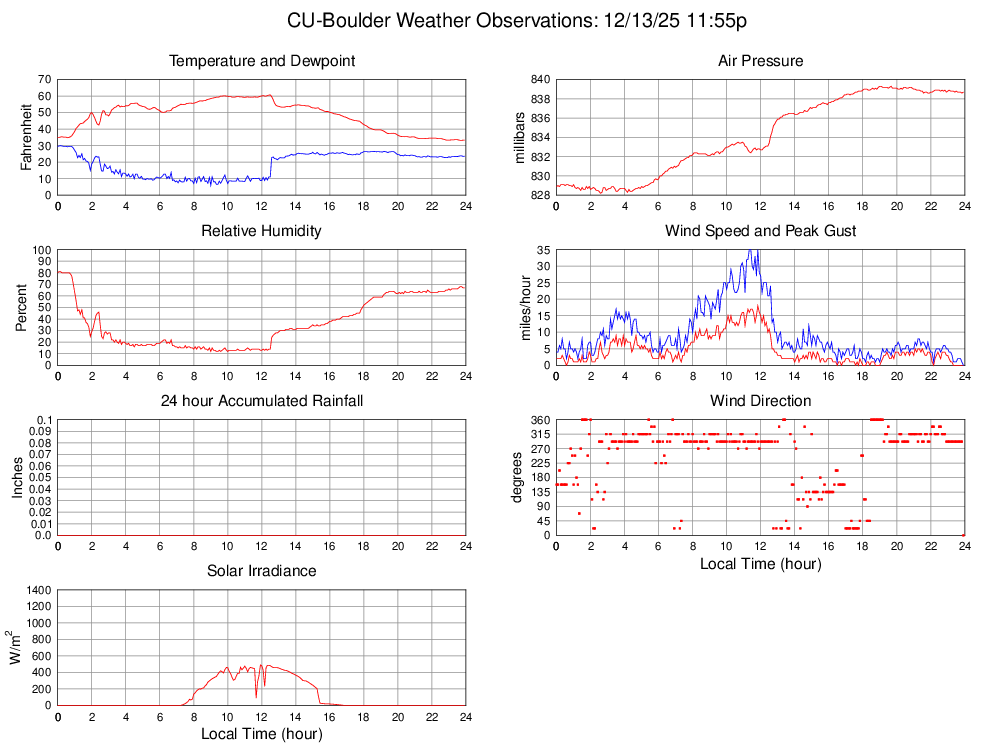 Temperature (F) 33.4 33.2 @ 23:40 60.7 @ 12:30 48.2