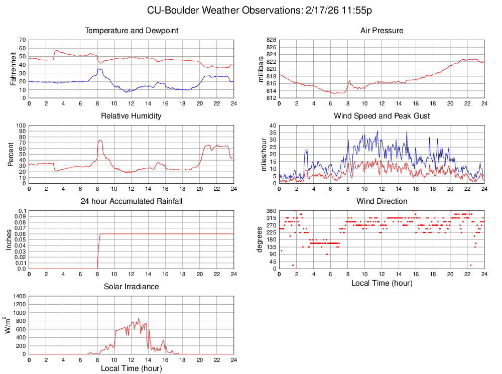 Temperature (F) 39.7 36.7 @ 23:10 57.4 @ 03:15 46.4
