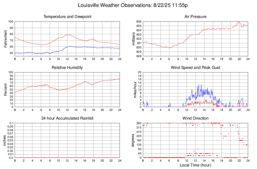 Dewpoint (F) 57.5 48.9 @ 04:40 60.7 @ 12:45 55.0