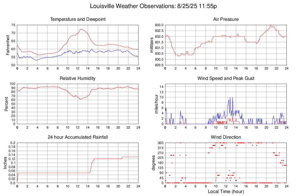 Dewpoint (F) 55.2 53.0 @ 03:45 59.9 @ 14:45 56.9