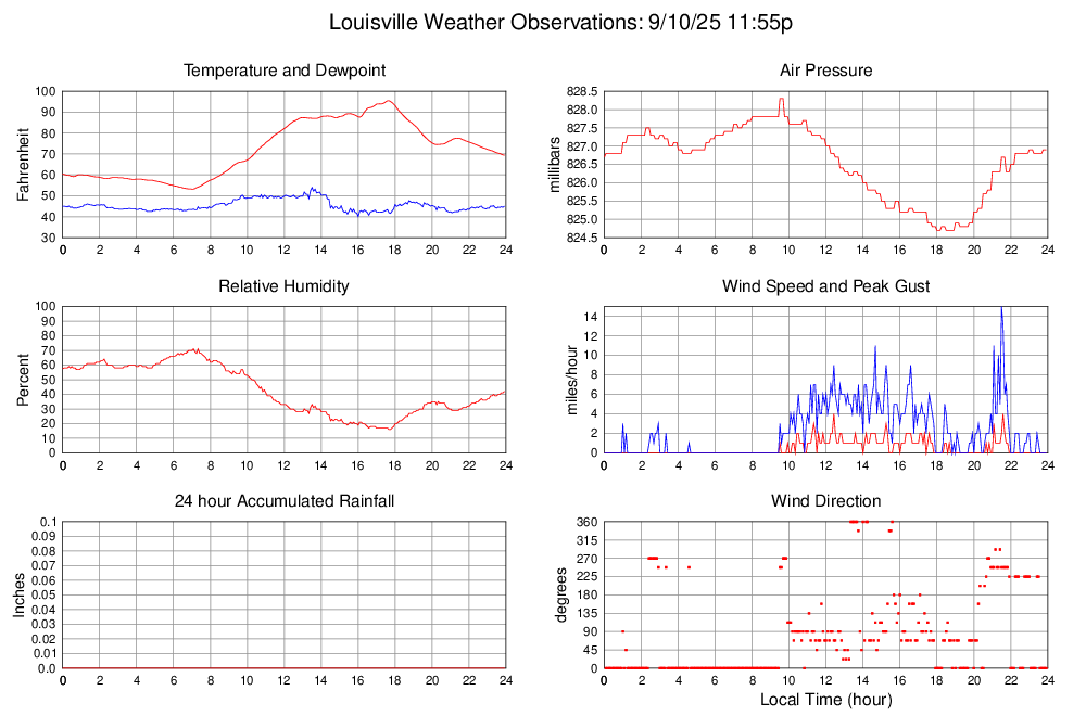 Dewpoint (F) 45.0 40.1 @ 16:00 54.0 @ 13:30 45.4