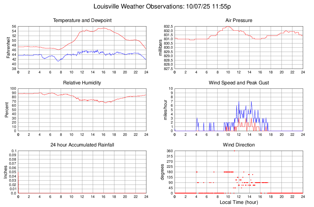 Temperature (F) 46.5 46.1 @ 07:30 55.3 @ 15:55 50.2