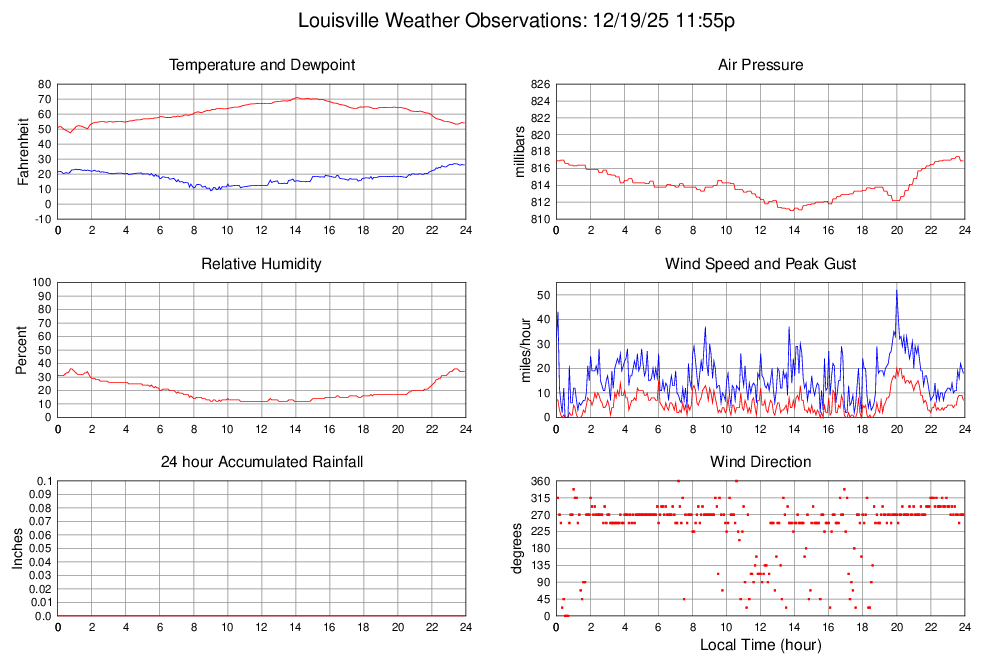 Temperature (F) 54.1 47.5 @ 00:45 71.1 @ 14:05 61.2