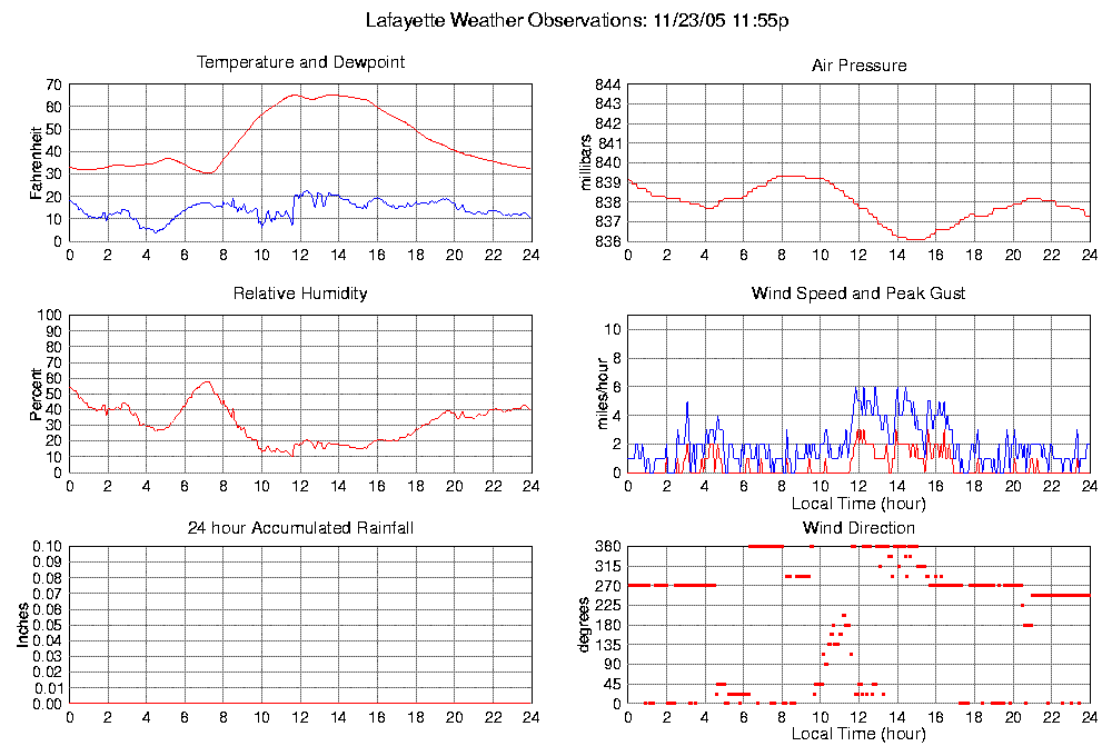 Temperature (F) 32.5 30.3 @ 07:10 65.3 @ 11:40 45.1