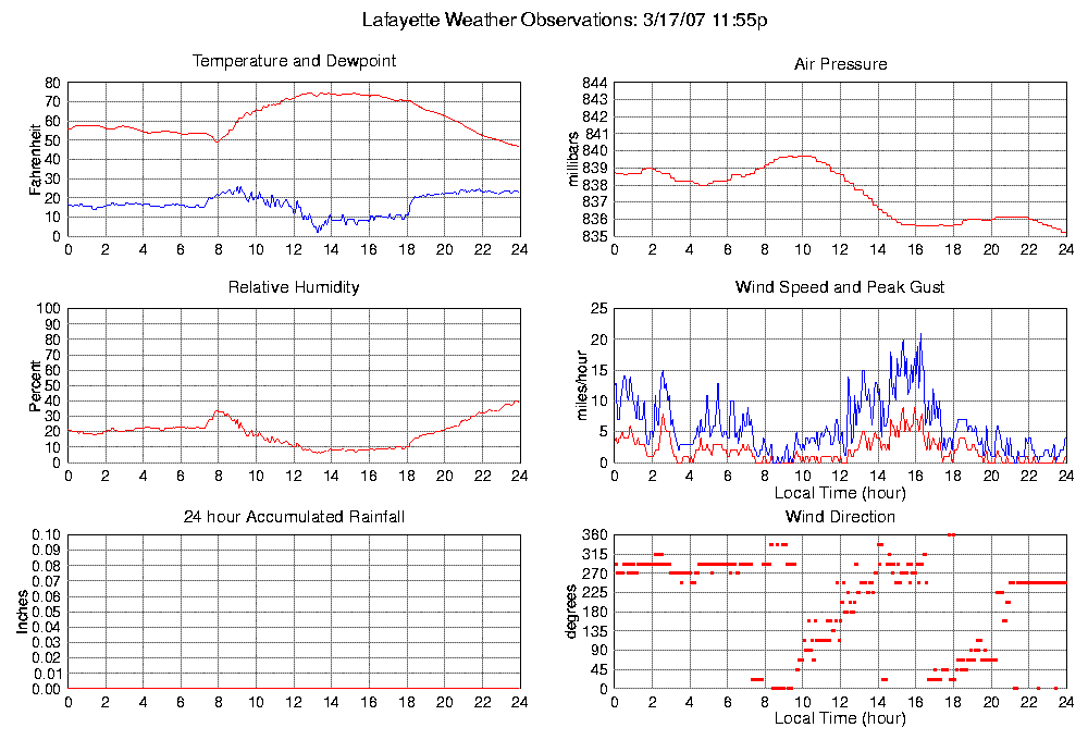 Temperature (F) 46.8 46.8 @ 23:55 74.9 @ 13:25 61.7
