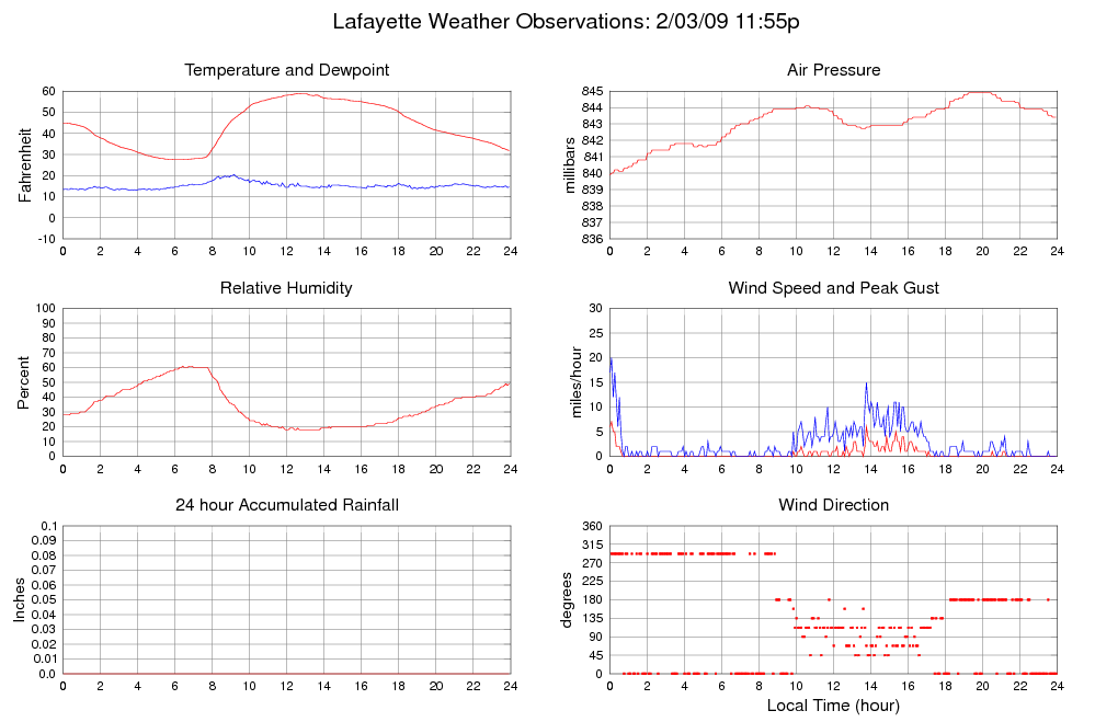 Temperature (F) 31.9 27.5 @ 05:55 58.9 @ 12:35 43.4