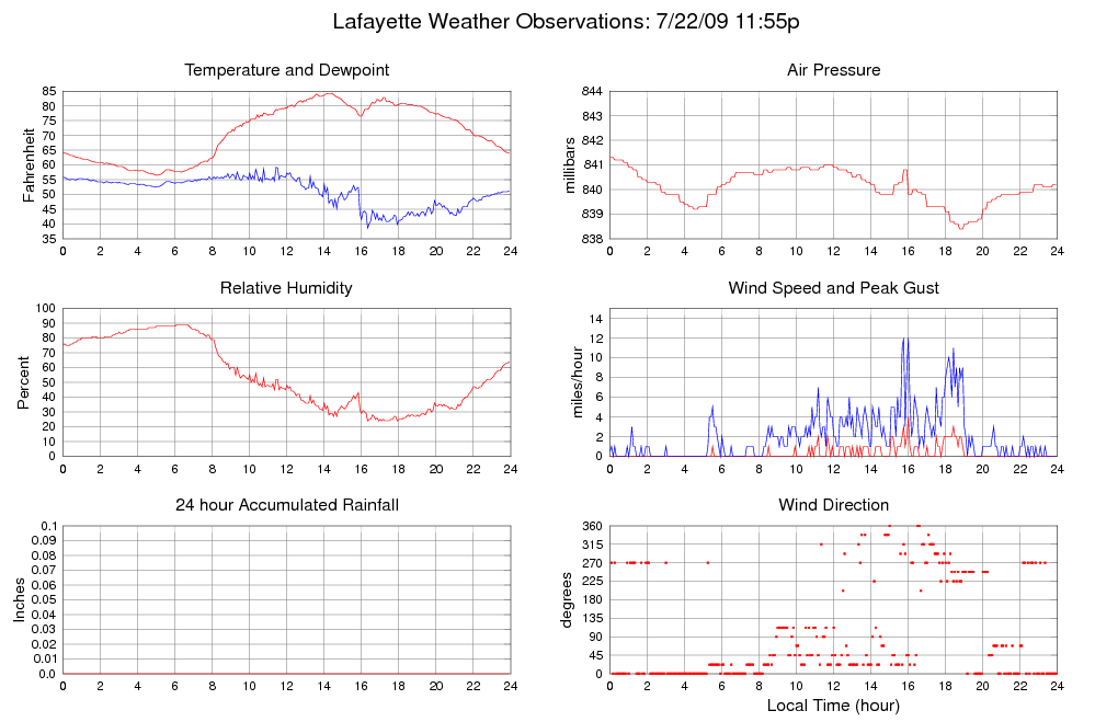 Temperature (F) 64.0 56.5 @ 05:00 84.3 @ 14:25 71.0