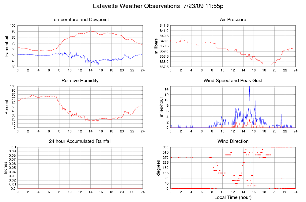 Temperature (F) 67.8 56.9 @ 05:05 90.5 @ 14:00 74.2