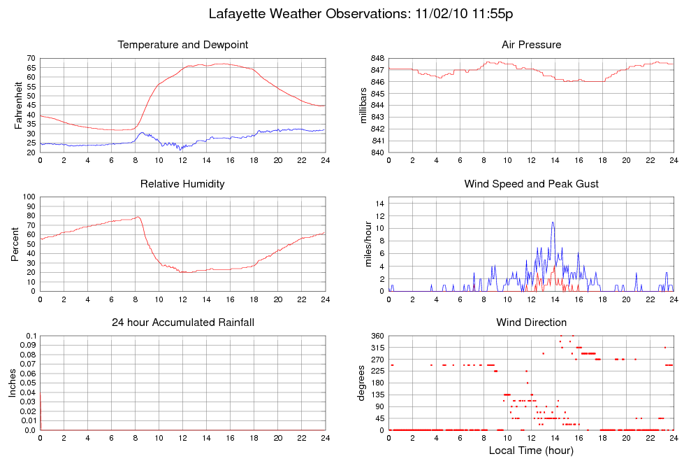Temperature (F) 44.6 31.9 @ 06:15 67.1 @ 15:25 49.6