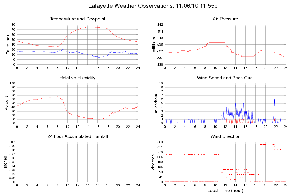 Temperature (F) 45.2 35.3 @ 07:25 75.4 @ 13:55 54.1