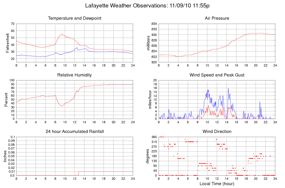 Temperature (F) 30.6 30.6 @ 23:55 55.1 @ 09:20 38.8