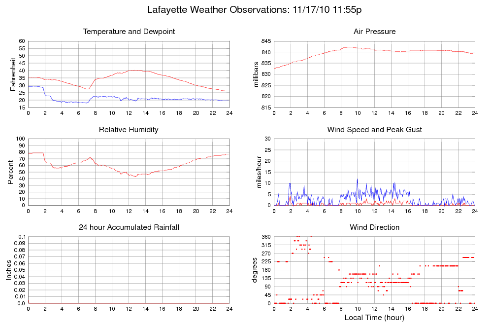Temperature (F) 26.1 26.1 @ 23:35 40.3 @ 12:40 33.7