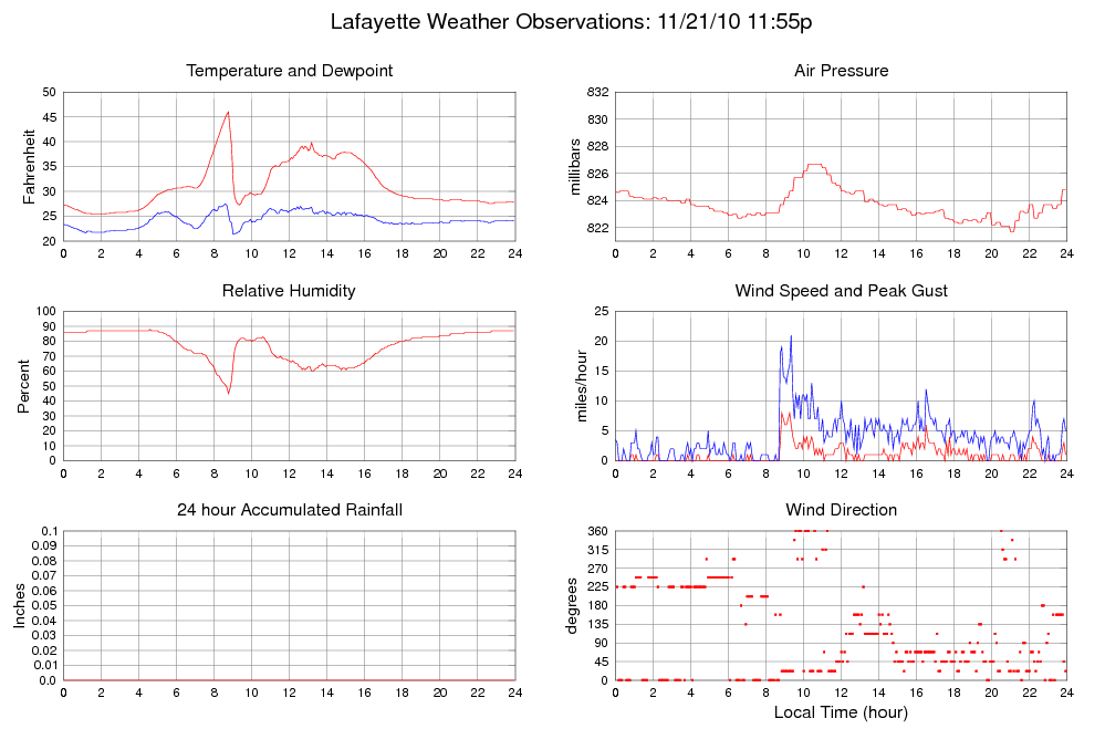Temperature (F) 27.8 25.4 @ 01:30 46.0 @ 08:45 31.1