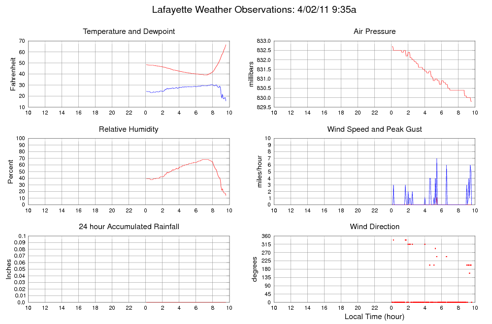 Temperature (F) 66.6 39.2 @ 07:20 66.6 @ 09:35 44.9