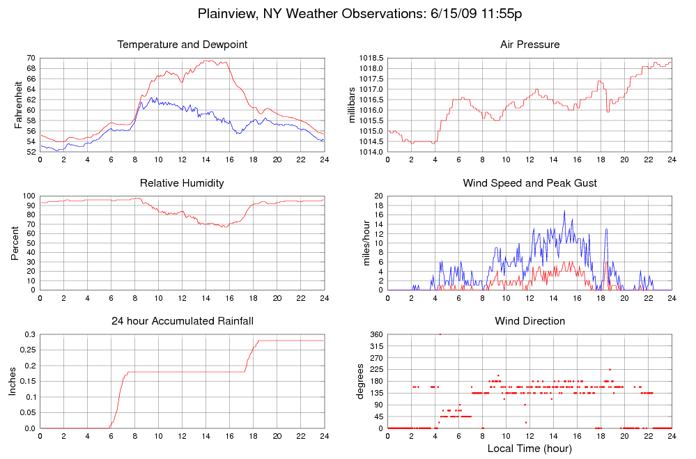 Dewpoint (F) 54.3 52.2 @ 01:25 62.4 @ 09:25 57.0