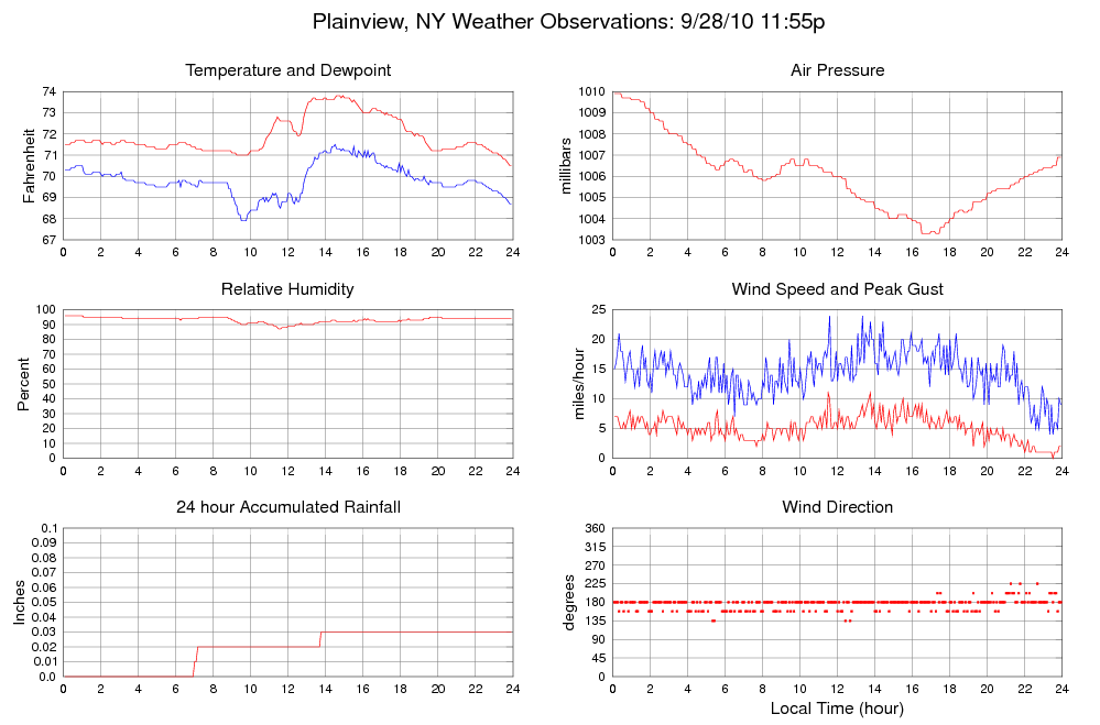 Dewpoint (F) 68.7 67.9 @ 09:30 71.5 @ 14:30 69.8