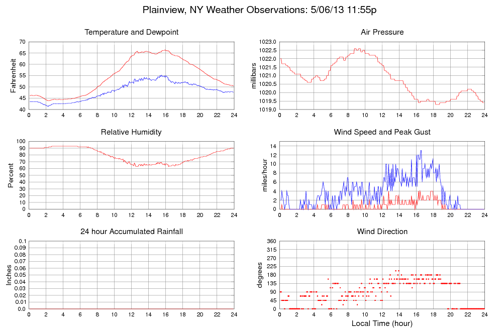 Dewpoint (F) 47.7 41.4 @ 02:15 55.2 @ 15:30 48.2