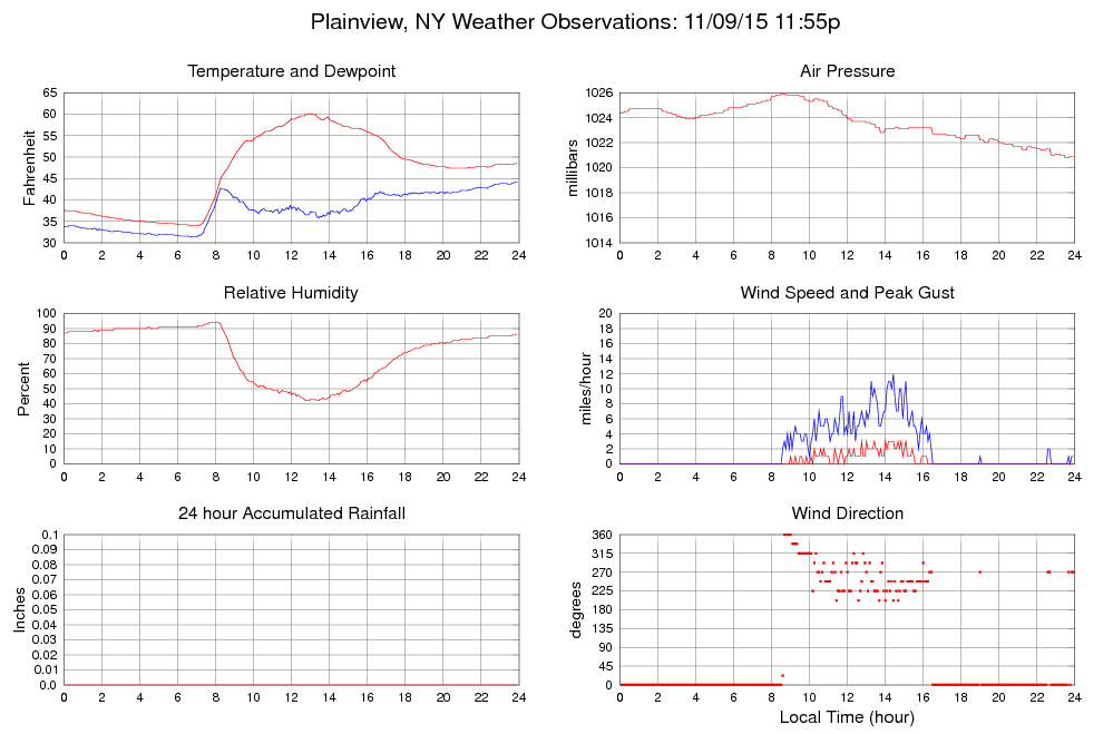 Temperature (F) 48.5 34.0 @ 06:45 60.1 @ 12:55 46.9
