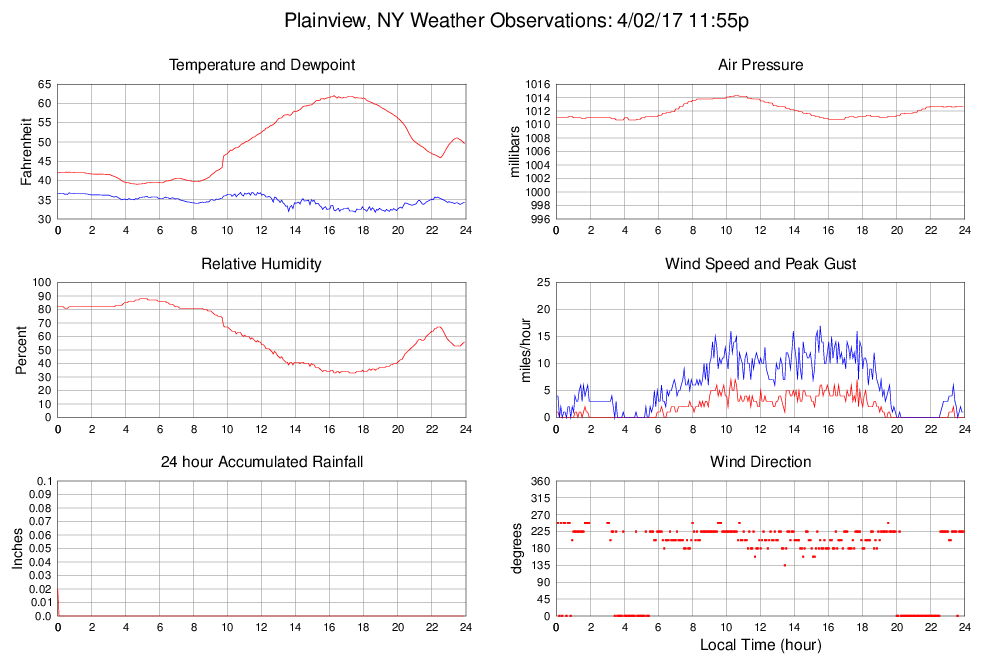 Dewpoint (F) 34.3 31.8 @ 17:30 36.9 @ 10:45 34.6