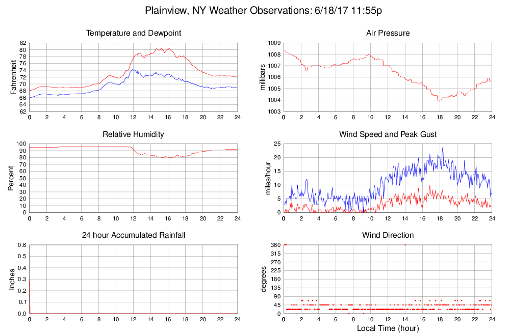 Dewpoint (F) 69.0 66.0 @ 00:05 74.3 @ 11:55 69.6