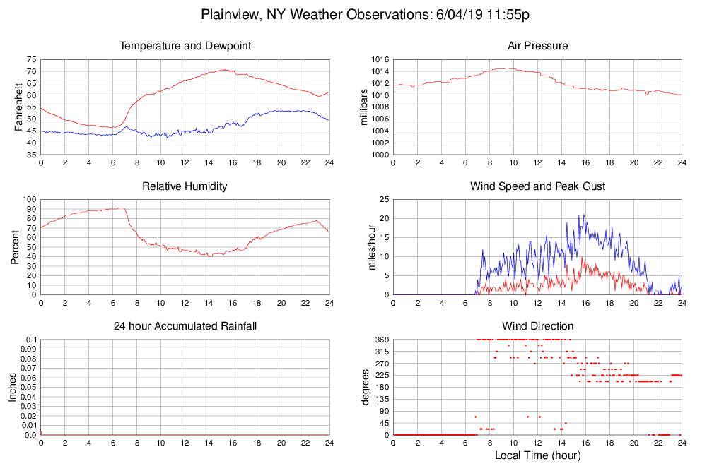Dewpoint (F) 49.4 42.0 @ 10:30 53.5 @ 19:25 46.9