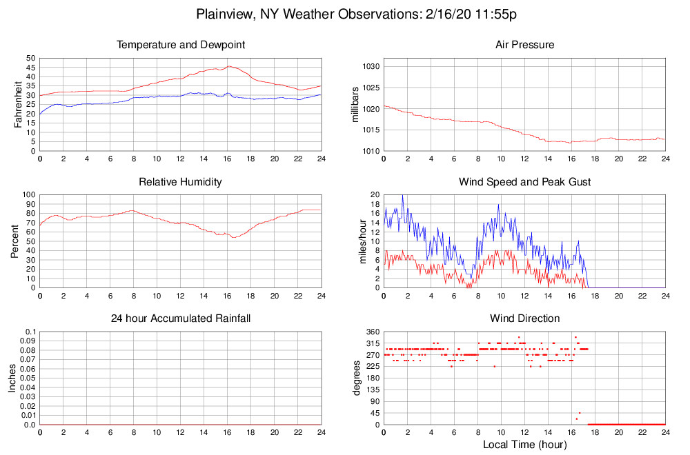 Temperature (F) 34.9 29.8 @ 00:05 45.6 @ 16:05 36.3