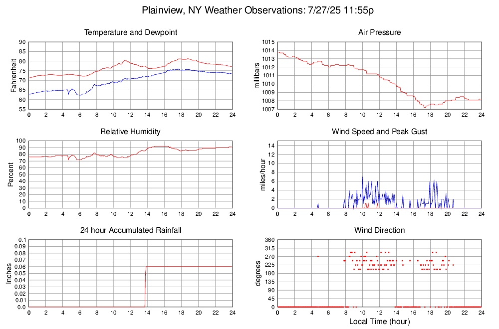 Dewpoint (F) 73.4 62.3 @ 06:00 76.0 @ 17:35 69.9
