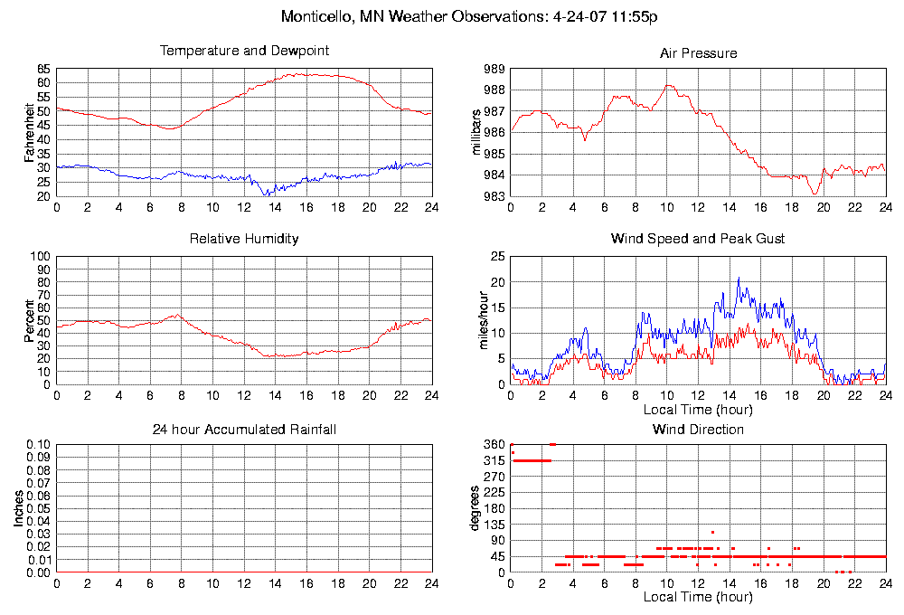 Dewpoint (F) 31.2 20.2 @ 13:35 32.5 @ 21:40 27.4