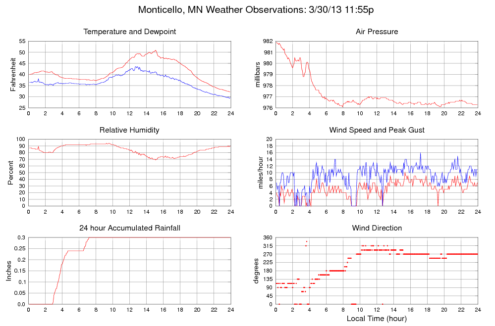 Dewpoint (F) 29.6 29.3 @ 23:50 43.5 @ 12:40 36.7