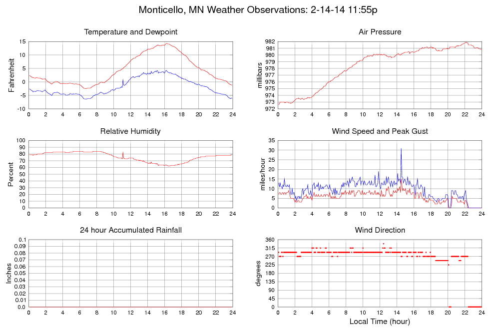Temperature (F) -1.2 -2.5 @ 06:40 14.3 @ 16:10 4.3