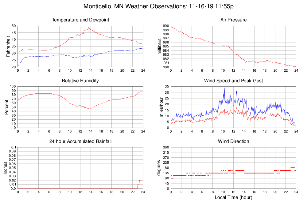 Dewpoint (F) 33.6 21.0 @ 00:05 33.6 @ 23:50 29.1