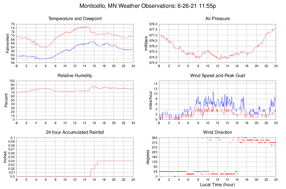 Temperature (F) 69.4 64.1 @ 05:10 74.8 @ 13:20 69.8