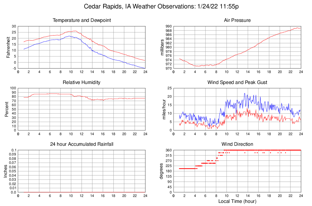 Dewpoint (F) -4.9 -4.9 @ 23:55 21.9 @ 09:35 10.4