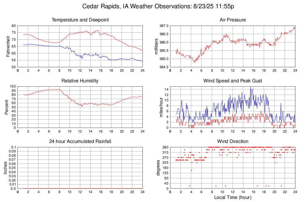 Dewpoint (F) 54.1 54.1 @ 23:55 66.7 @ 02:10 60.4