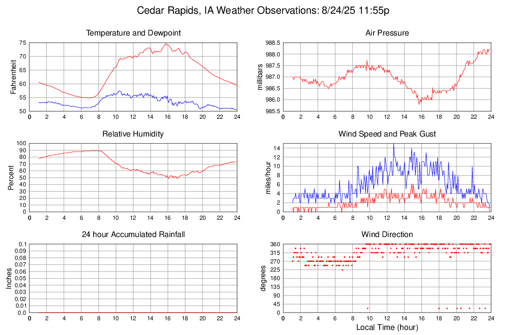 Dewpoint (F) 50.5 50.5 @ 23:55 57.4 @ 10:20 53.3