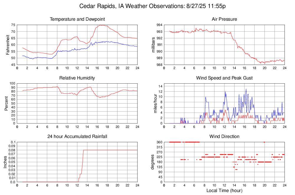 Dewpoint (F) 58.6 49.3 @ 03:10 62.5 @ 17:45 56.4