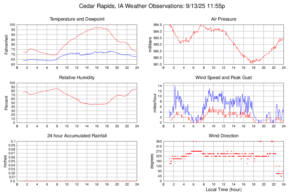 Temperature (F) 73.3 69.5 @ 07:15 97.5 @ 15:45 82.3
