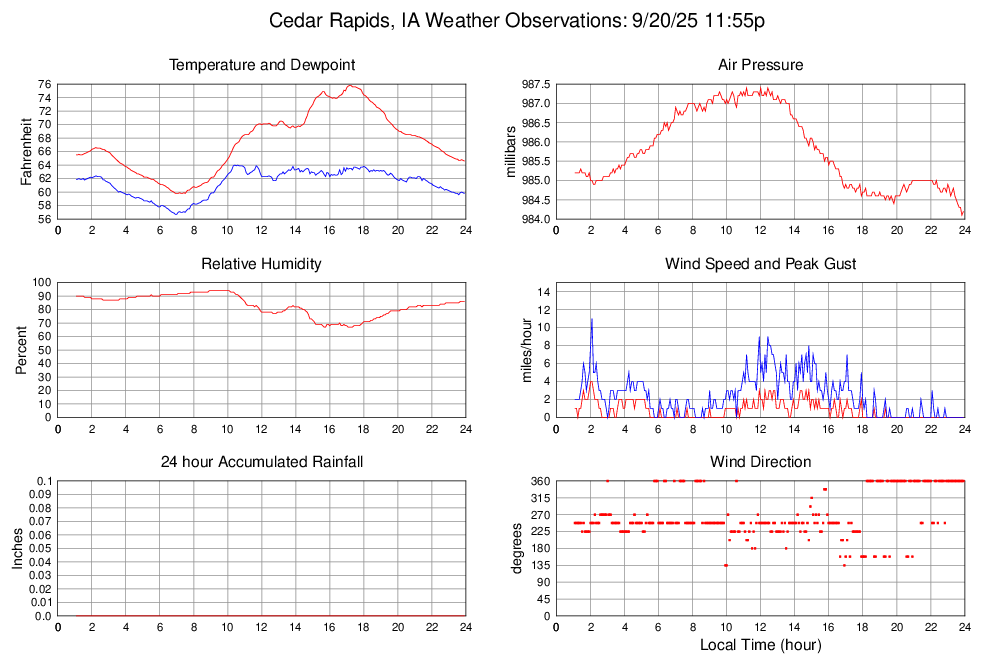 Dewpoint (F) 59.8 56.7 @ 06:55 64.0 @ 10:25 61.4