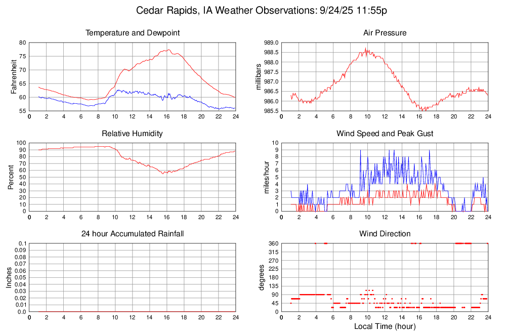 Dewpoint (F) 56.0 55.6 @ 22:05 62.7 @ 10:25 59.1