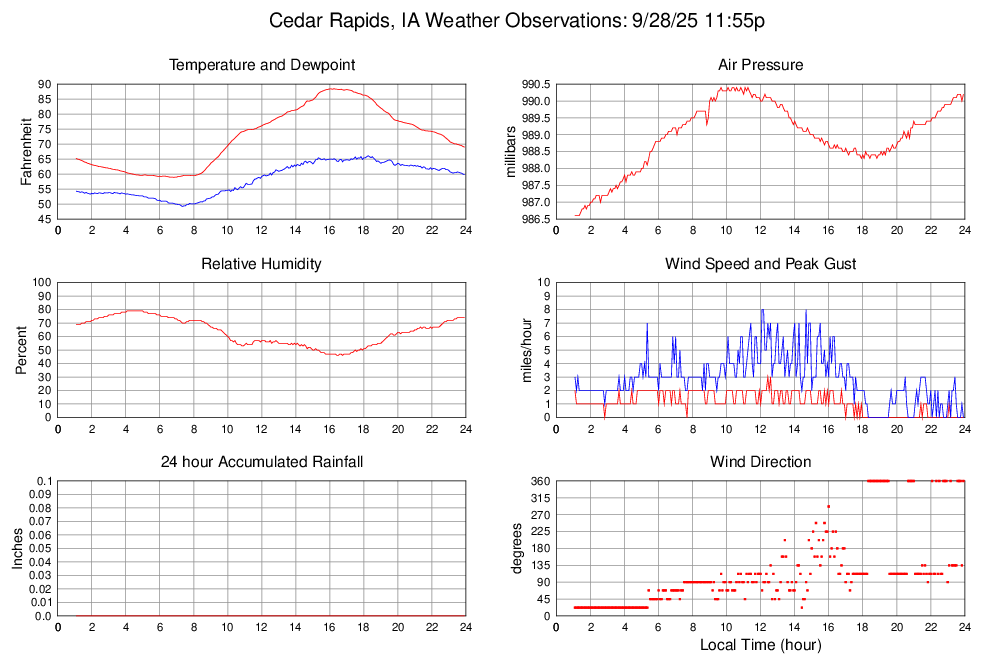 Temperature (F) 69.0 58.9 @ 06:50 88.5 @ 16:15 72.4