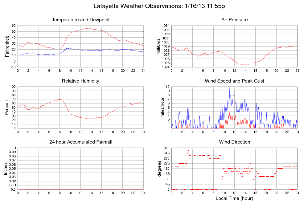 Temperature (F) 26.6 20.7 @ 07:35 55.7 @ 13:40 36.8