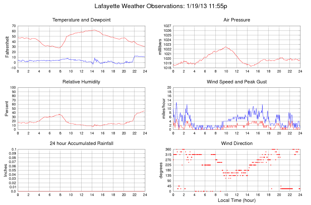 Temperature (F) 31.1 28.0 @ 07:40 62.1 @ 14:20 45.6