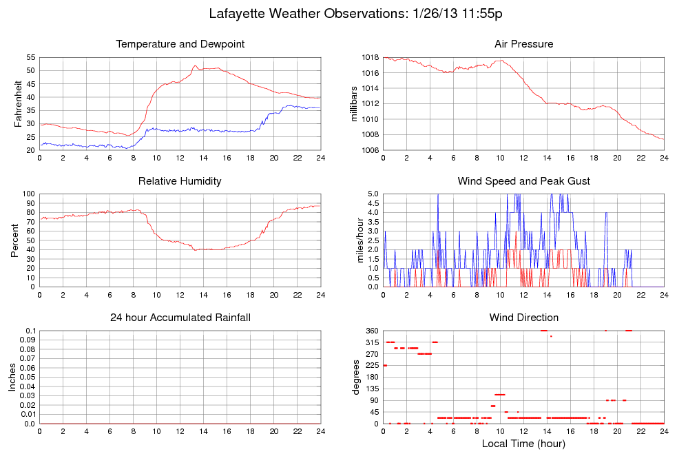 Temperature (F) 39.5 25.6 @ 07:25 51.9 @ 13:15 38.5