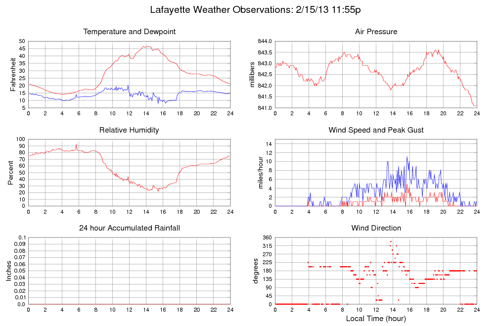 Temperature (F) 21.3 14.1 @ 03:55 46.5 @ 14:10 27.9